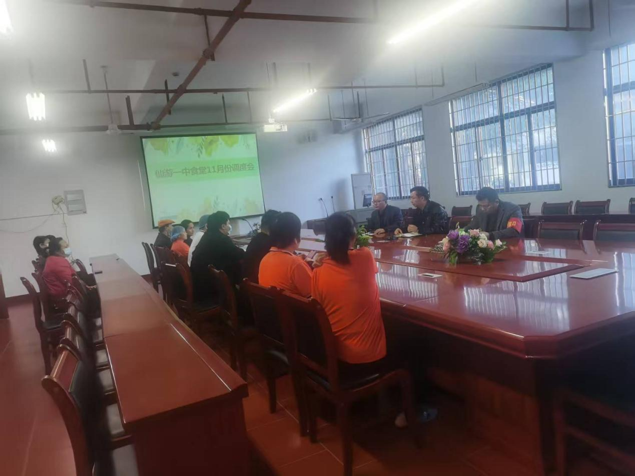 时间: 2025年11月28日 地点: 林德临综合楼荣誉室 参会人员: 校领导郑加金、分管领导刘炳东,食堂负责人陈素林、食堂管理服务团队负责人陈俊伟、现场经理黄明锦、食堂服务从业人员。