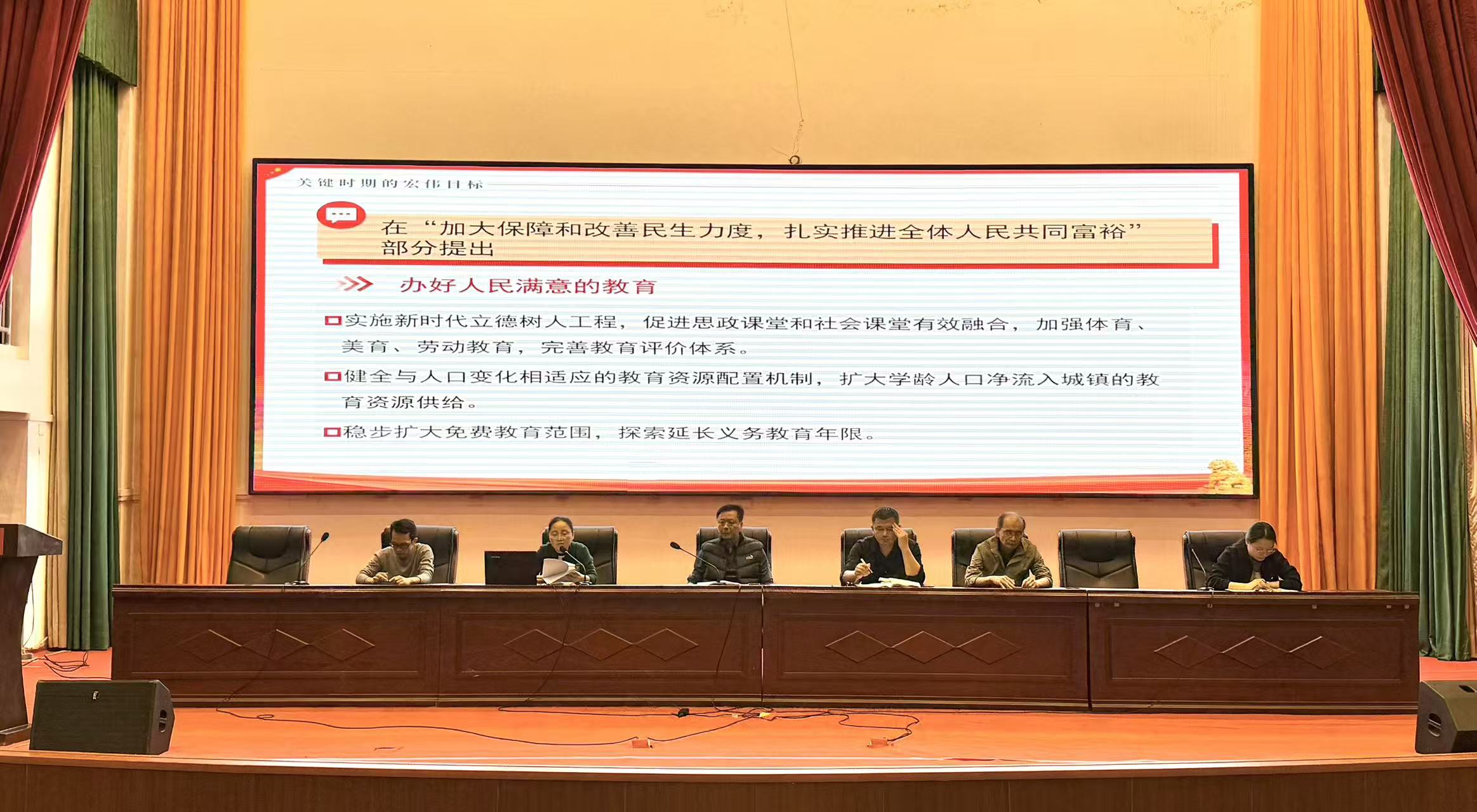 宣讲中,李冬梅副书记围绕《中共中央关于制定国民经济和社会发展第十五个五年规划的建议》和《县域普通高中振兴行动计划》,从县域高中教育视角解读教育核心部署,明确五大任务并提出八大行动。会议聚焦"教育科技人才协同发展"核心要求,结合中学教育实际,落实立德树人根本任务的实践路径,明确教育是基础,科技是关键,人才是根本,重点解读了如何一体推进教育科技人才高质量发展。